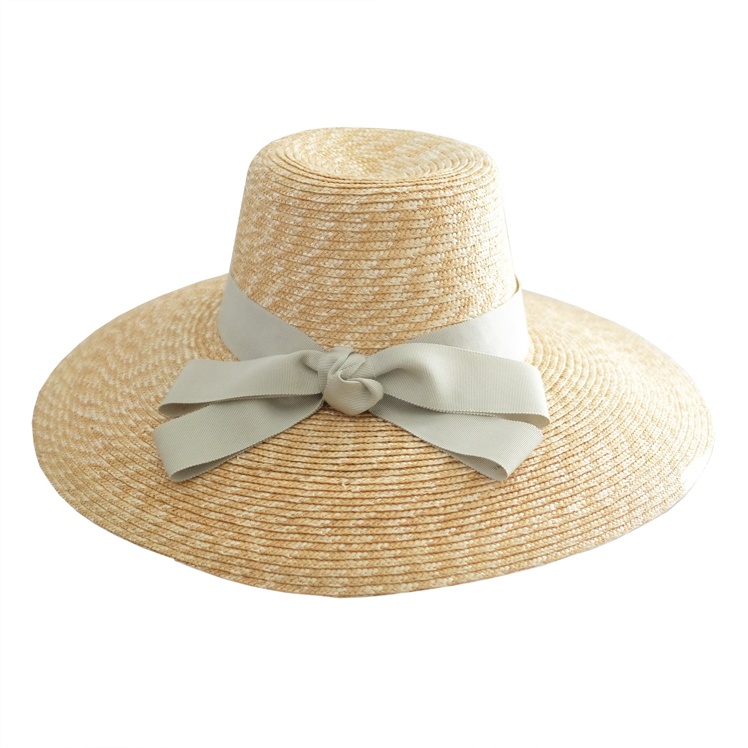 Meadow Hat in natural straw, with pale sage green grosgrain bow.