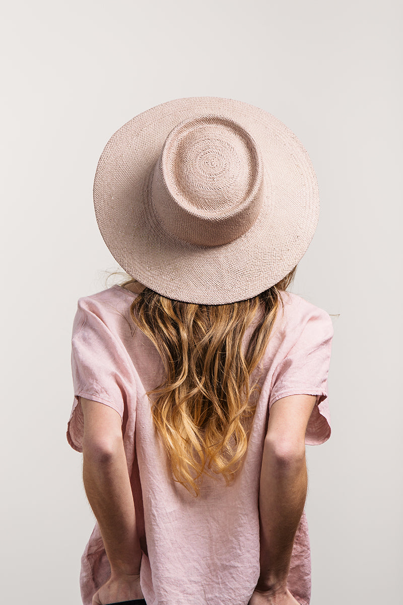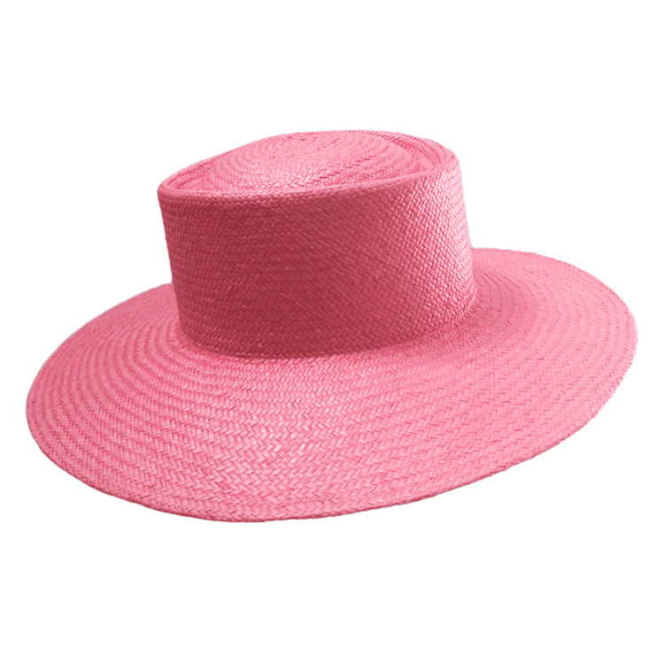 The Painter hat in electric bubblegum pink woven straw. Hand blocked and finished in Nashville.